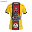 Samarreta oficial femenina 2a equipació CH Sant Cugat – groga, vermella i negra. Disseny sublimat Customify amb tall entallat, teixit tècnic transpirable i colors vius d’alta durabilitat.